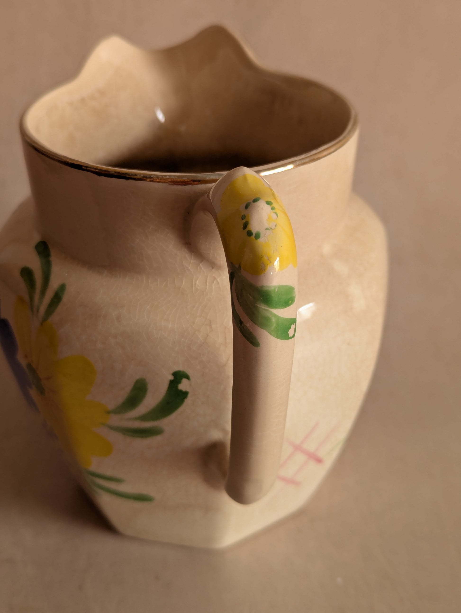 Floral Hand-Painted Octagonal Jug, Price Bros.