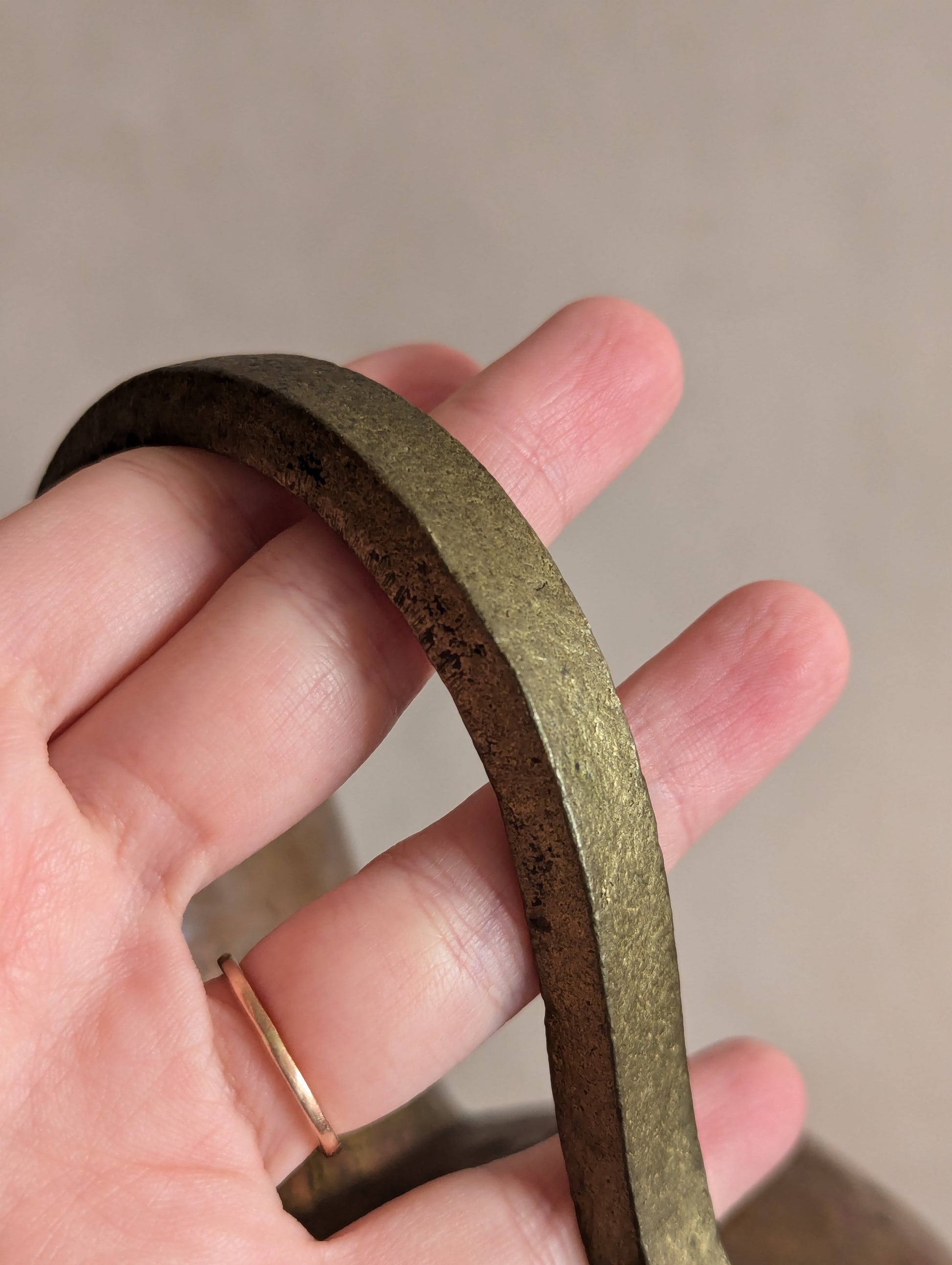 Numerous signs of a previous life, including a large dent under the belly, roughly the size of a thumb. Handle is still very strong and securely attached. No damage, cracks, or holes. Confirmed watertight.