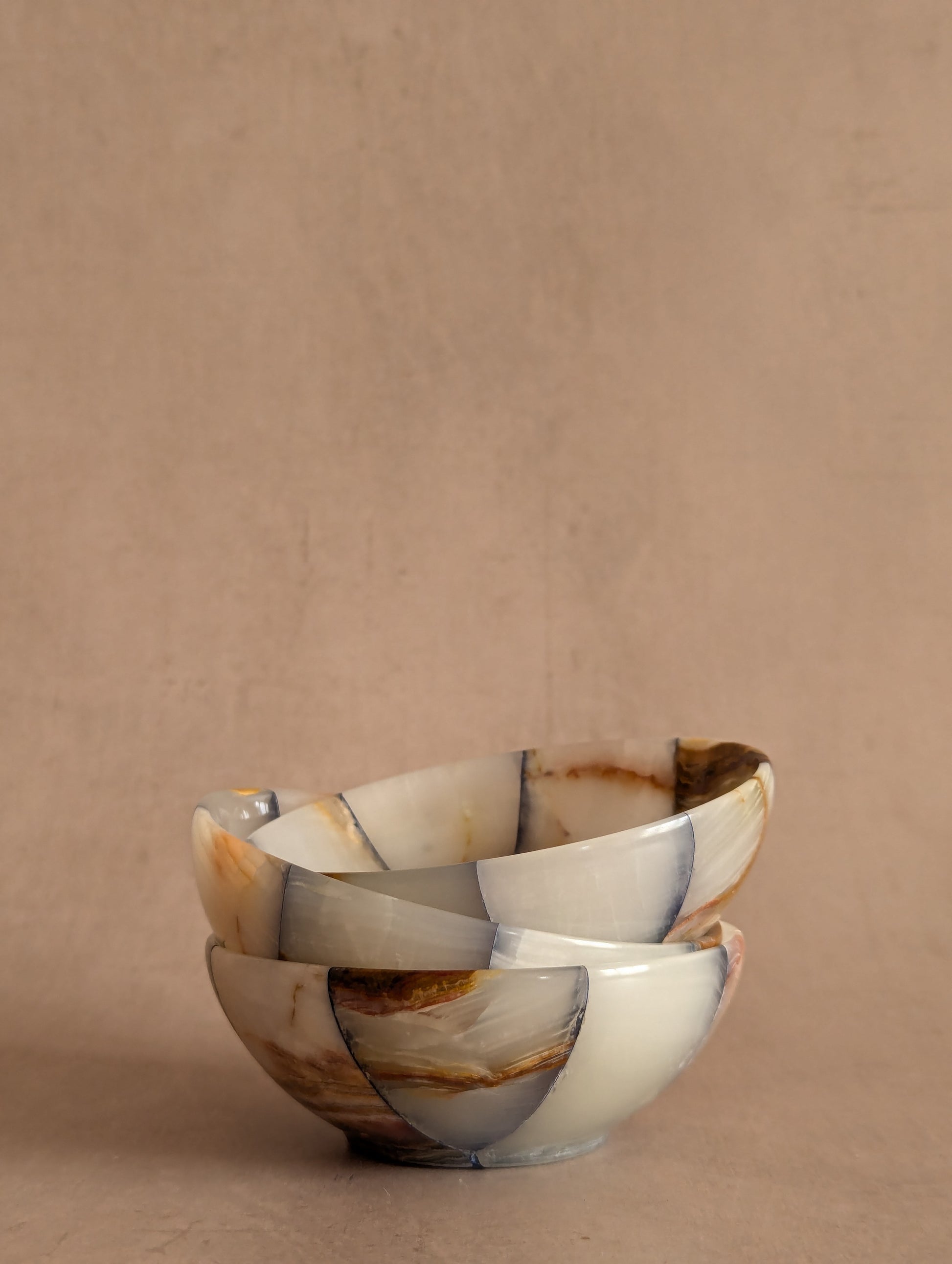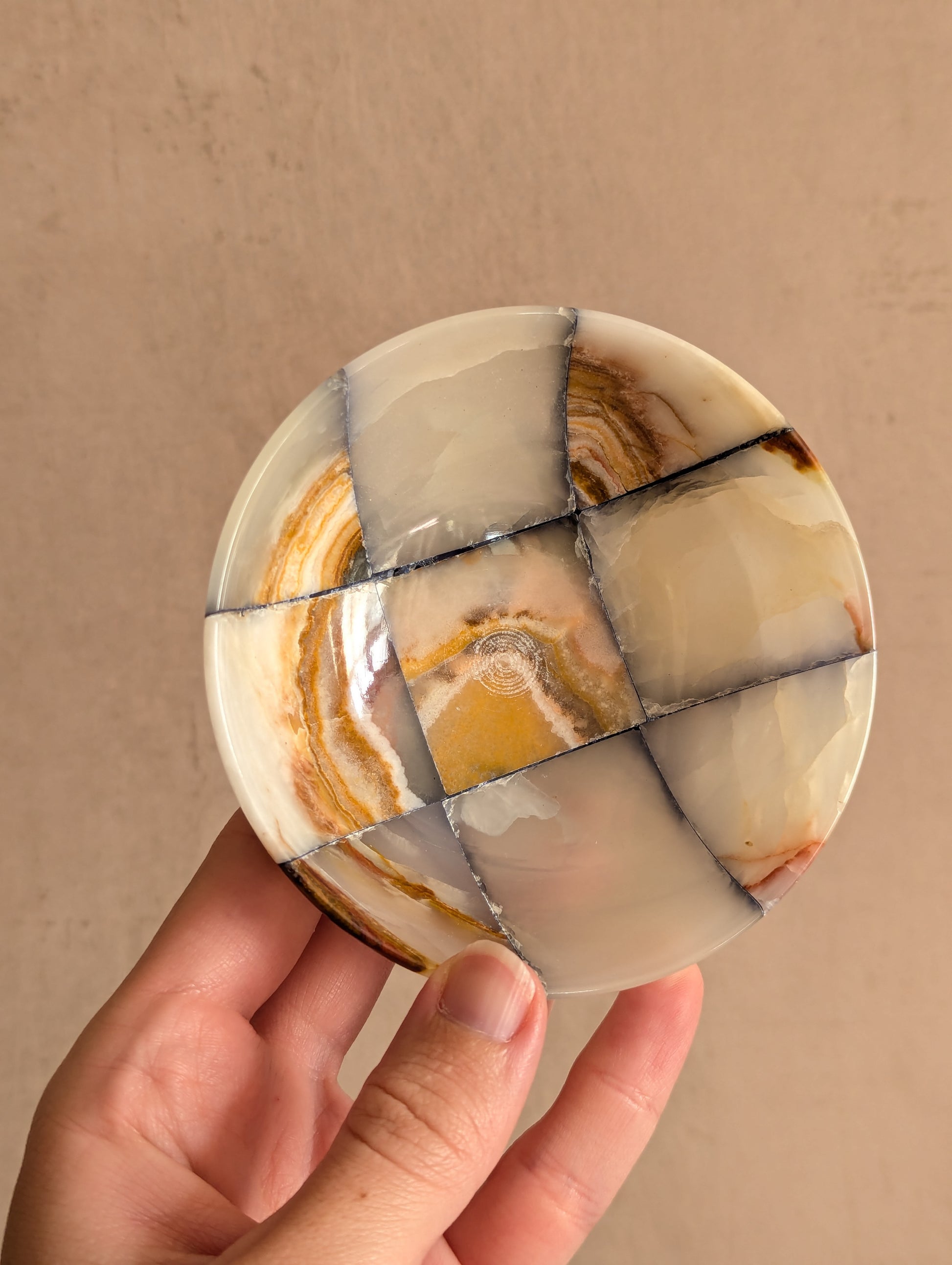 Pink & Blue Small Onyx Checkerboard Bowls, Set of Three