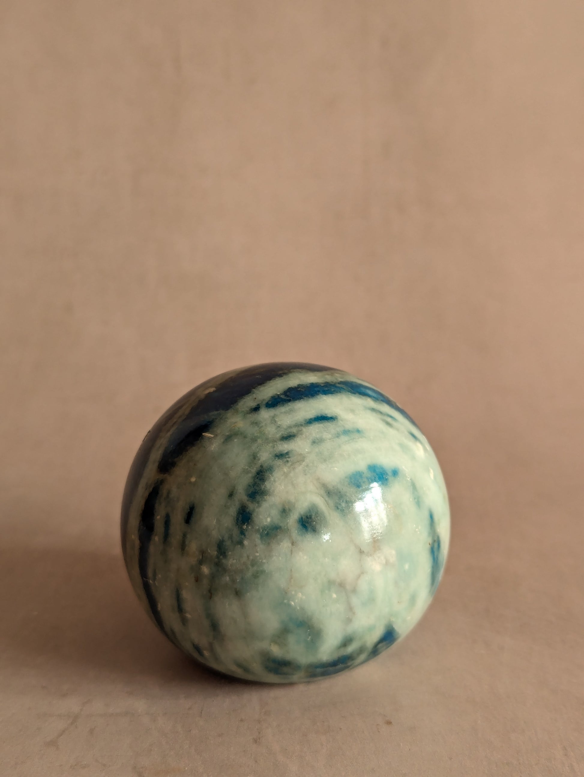 Blue Hand Carved Italian Alabaster Stone Sphere Paperweight