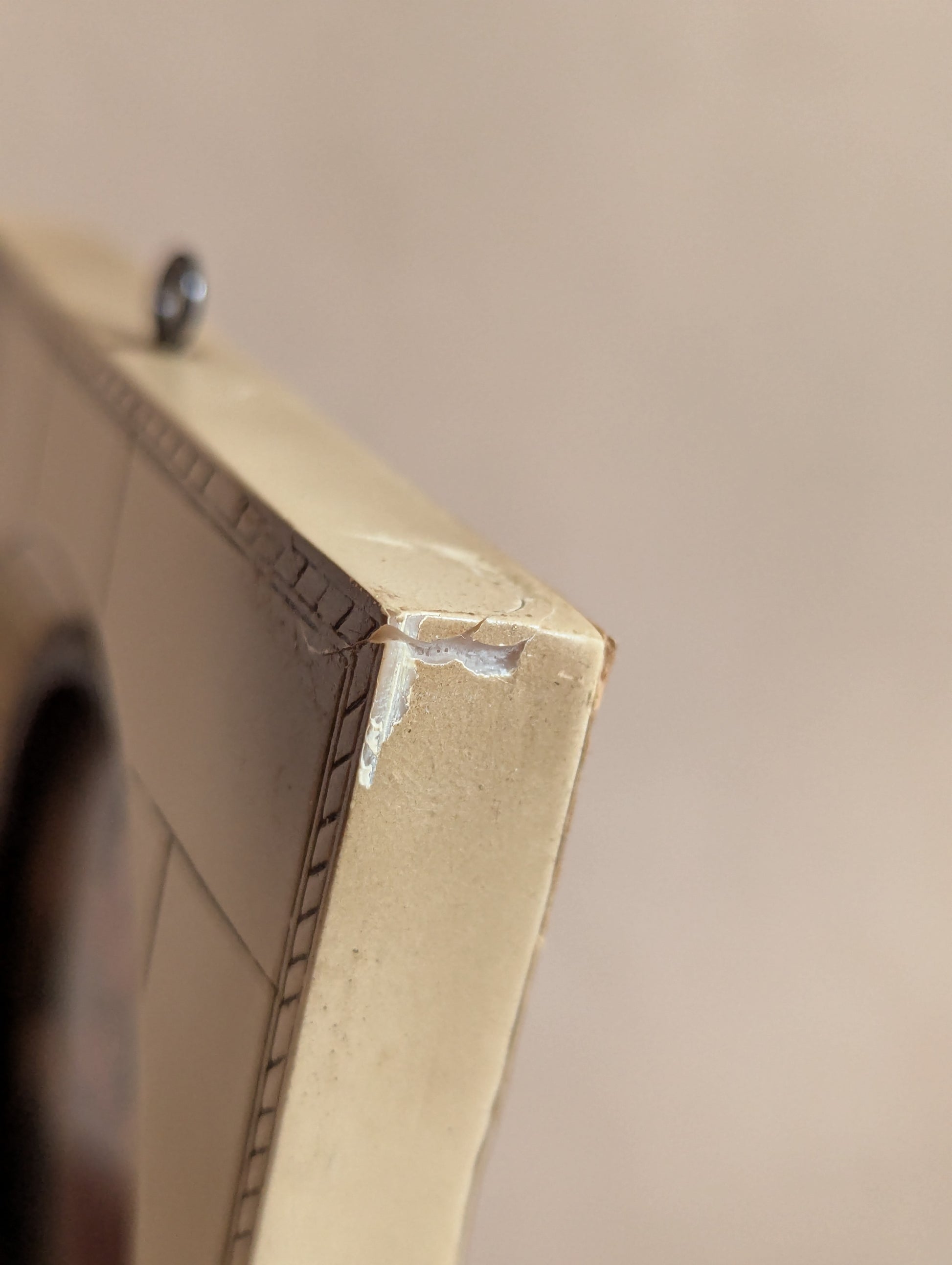 One of the frames has a repaired corner. Otherwise, in good condition.