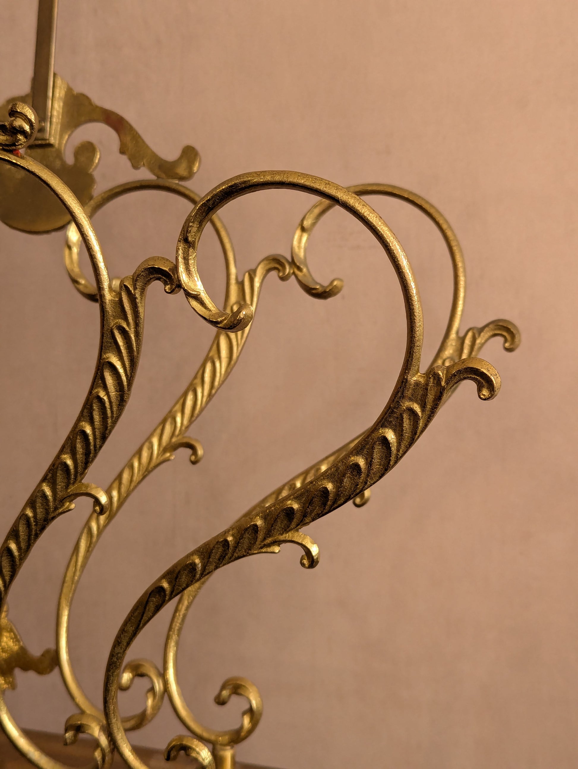 Easily one of the most stunning magazine racks you'll ever find! Featuring intricate scrollwork and seashell accents, this is the perfect piece to add a touch of Hollywood regency to your space.
