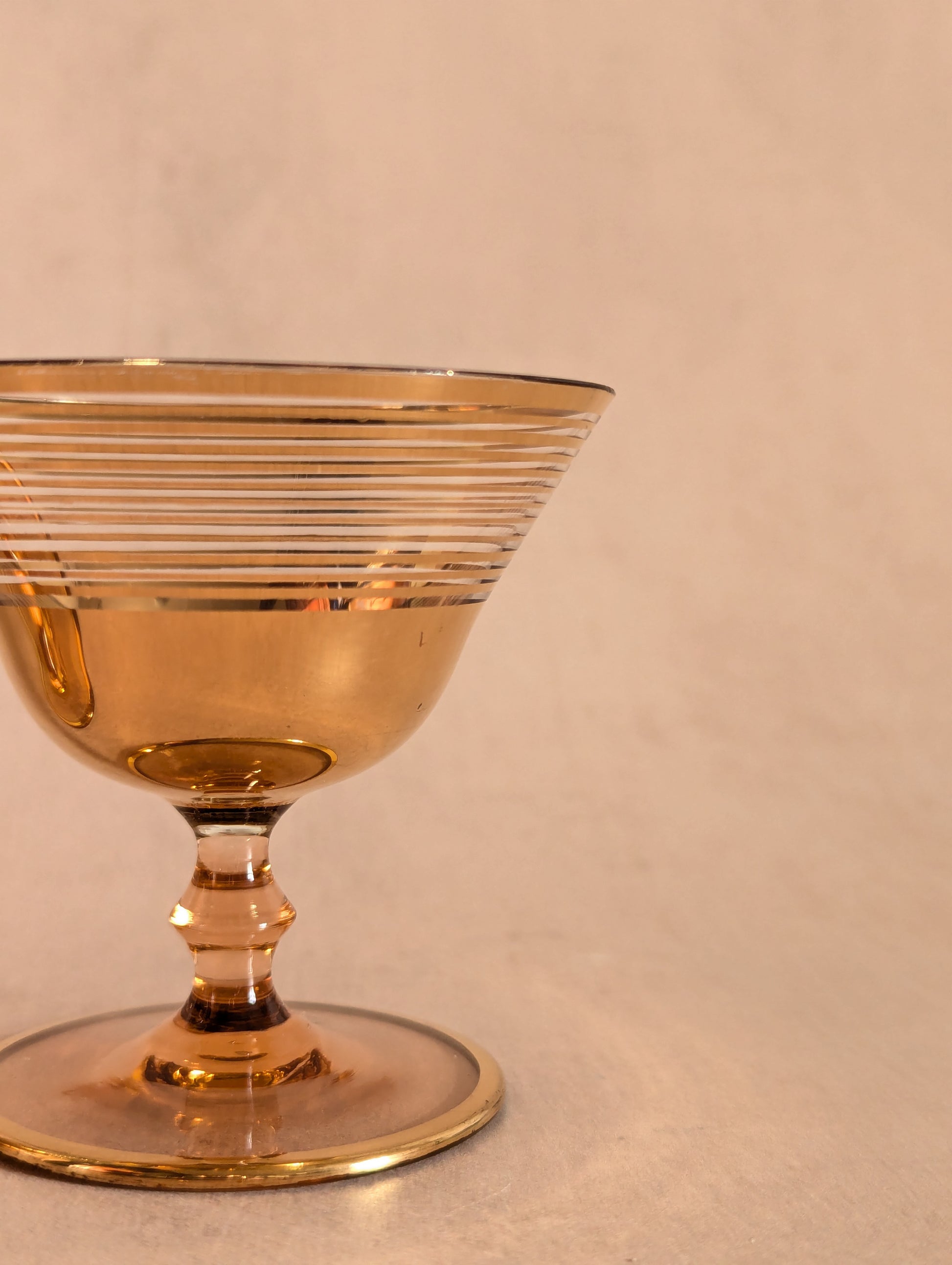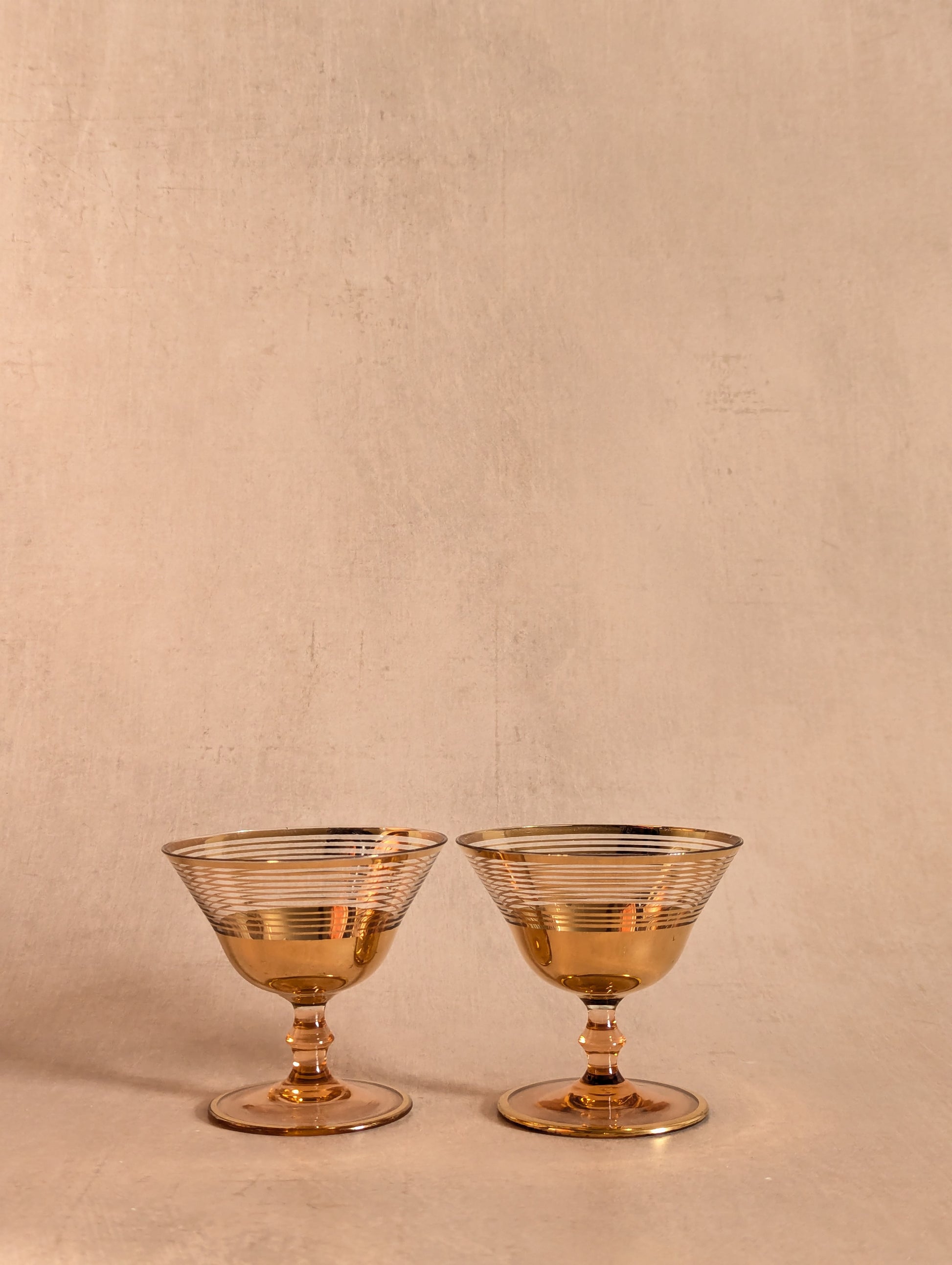 Mid-Century Golden Striped Mini Martini Glasses - Set of Two
