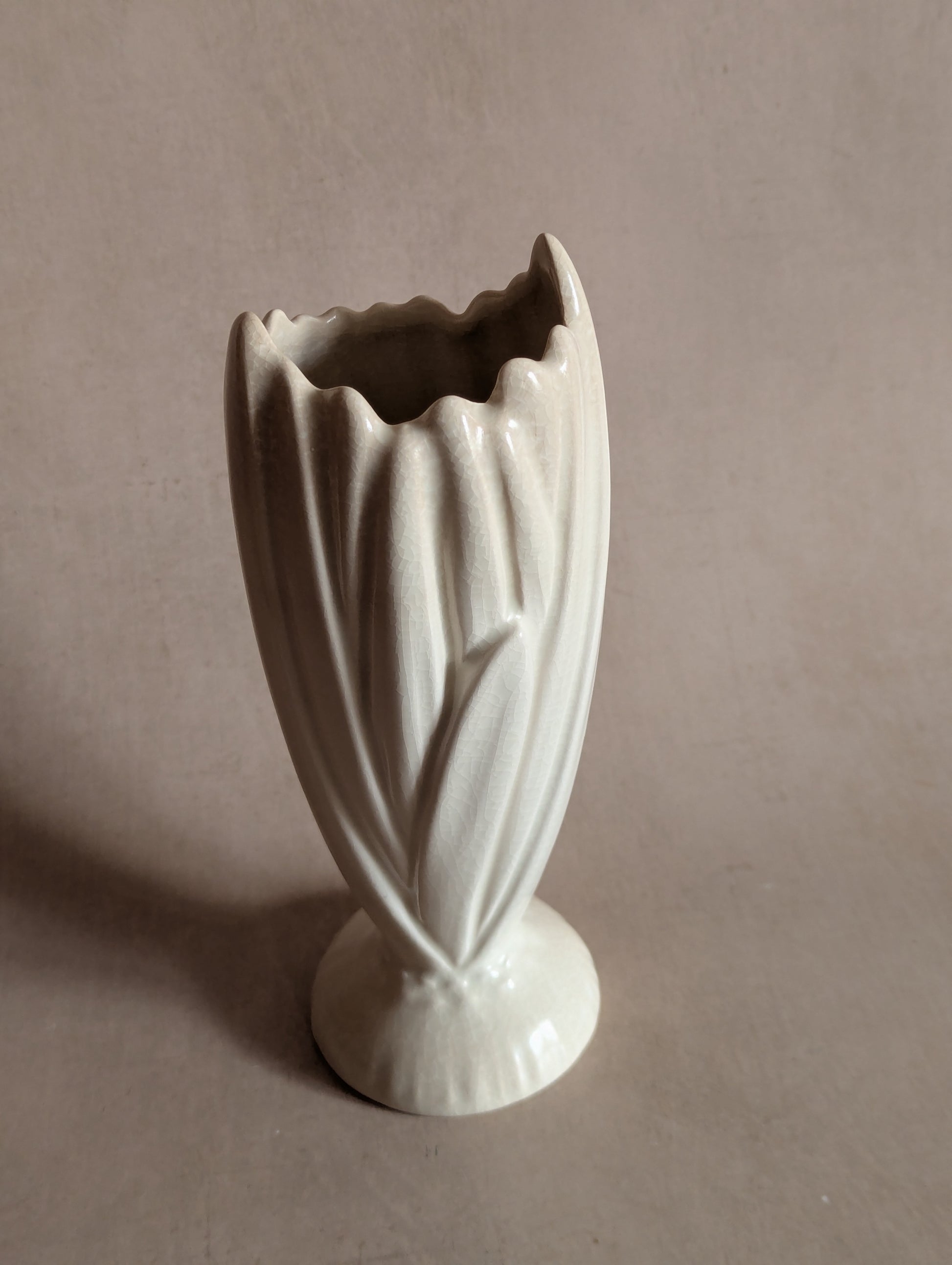 A classic white hyacinth vase by Sylvac. Vintage c. mid-century. Marked on the bottom but has become illegible over the years. We have come across many of these and are confident it is authentic Sylvac.