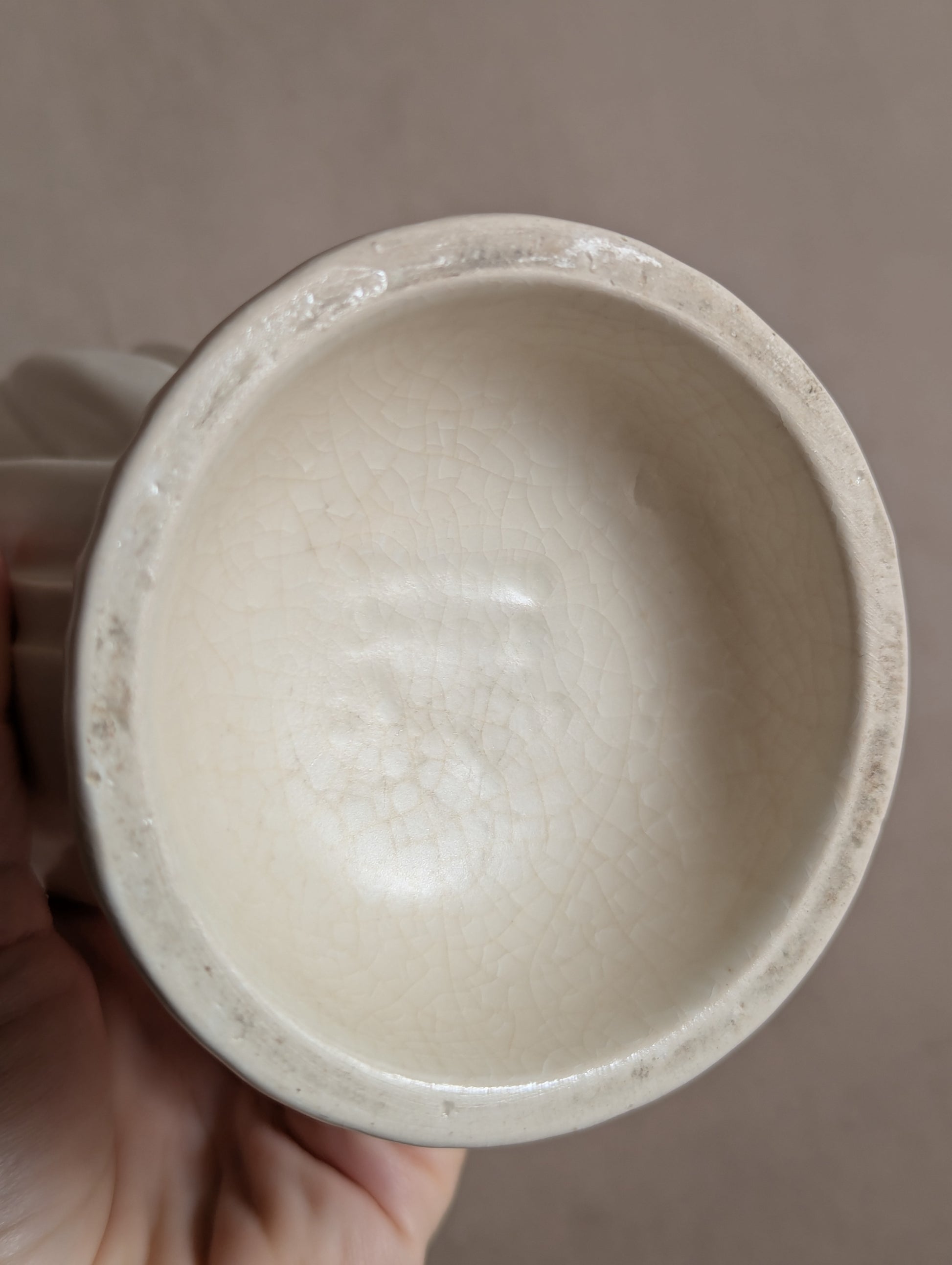 Signs of a previous life include all-over crazing and stains on the interior. No chips or cracks.